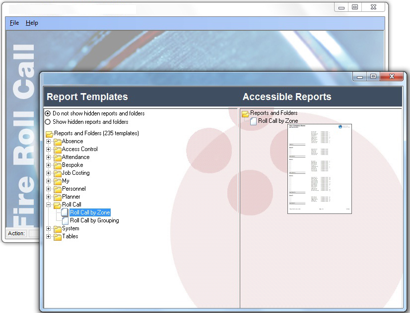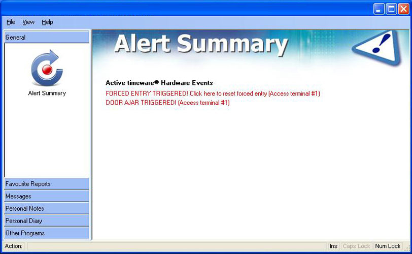 The fire alarm roll call is a standard facility in ActIn Time. By connecting your existing fire alarm system to an ActIn Time terminal, it is possible to generate an instant roll call report and unlock doors in the event of a fire.