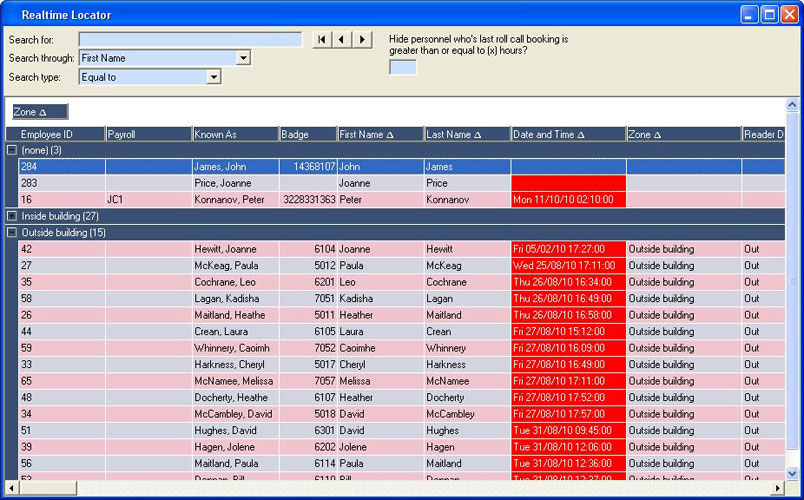 Once at the designated point they must present their badge/fob/finger to be read on an external reader. This enables Managers to quickly and easily account for their staff, and act upon any employee not present.