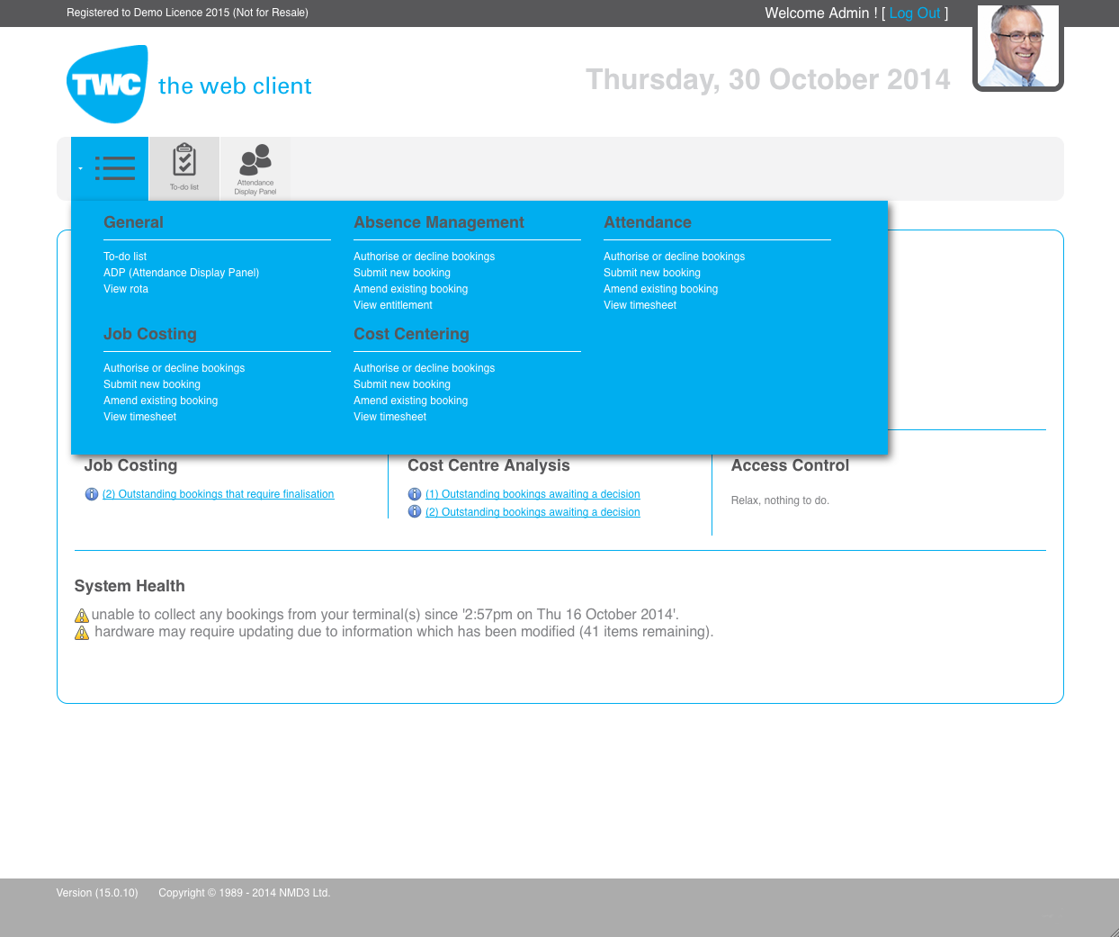 and to check remaining holiday entitlements. For the supervisor, the TWC enables instant access to employee attendance and absence information whilst allowing authorisation of various requests.
